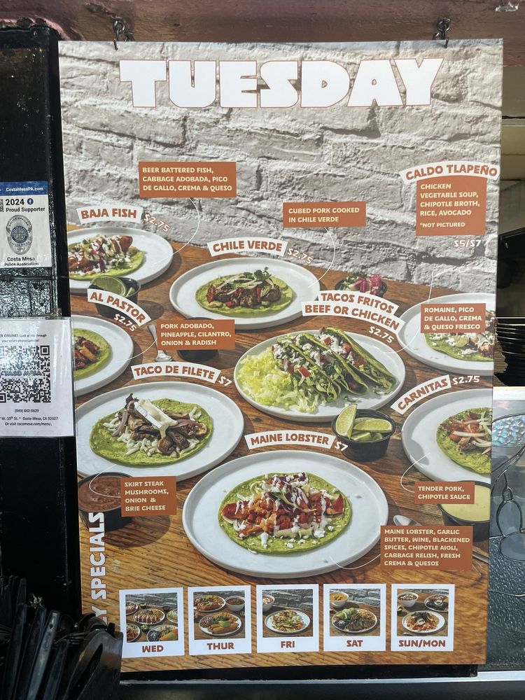 Taco Mesa Menu (Update 2025)